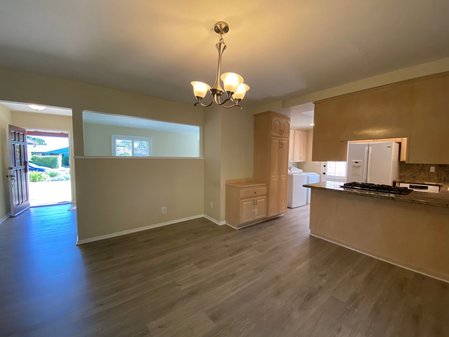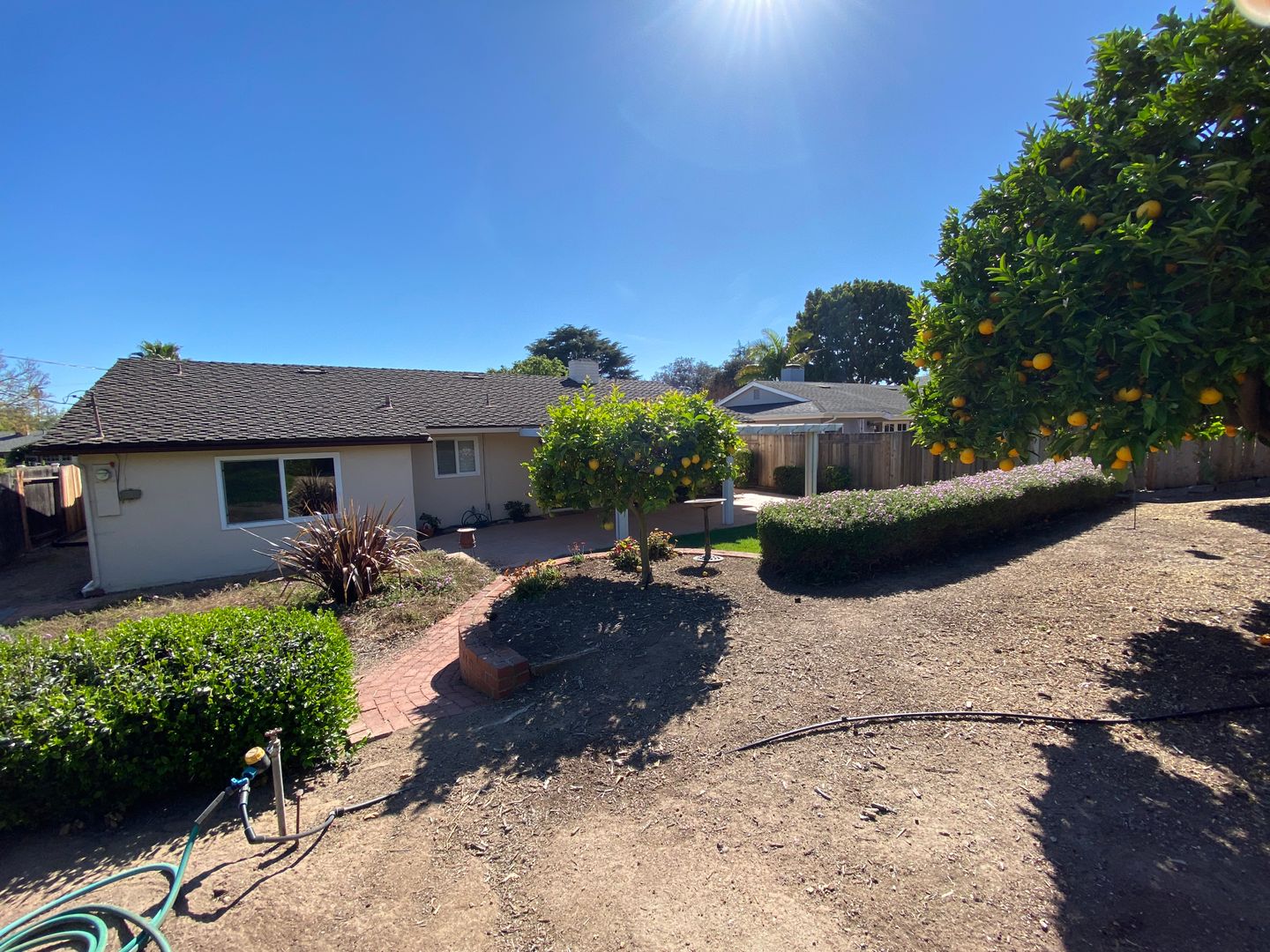 Lovely 3 bedroom, 2 bathroom, single level home, located in the desirable San Roque Neighborhood! Spacious and bright living room with fireplace. Recently updated kitchen with granite countertops and newer appliances that open to eat up bar and dining room. Three light and bright bedrooms work into the flow of the home perfectly. Large sliding glass door out to the covered patio where one can enjoy harvesting the abundant fruit from the several citrus trees, gather with family for a barbeque, or enjoy the intimacy of al fresco dining. Additional amenities include, wood laminate flooring, washer and dryer, water softener, and two car garage. Prime San Roque location that is in close proximity to Monte Vista Elementary School, parks, dining, shopping, and all that Upper State Street has to offer! No Smoking, Great Credit, No Co-Signers, Tenant pays utilities, owner pays for gardener. Owner May Consider One small pet under 20 lbs. Available now.